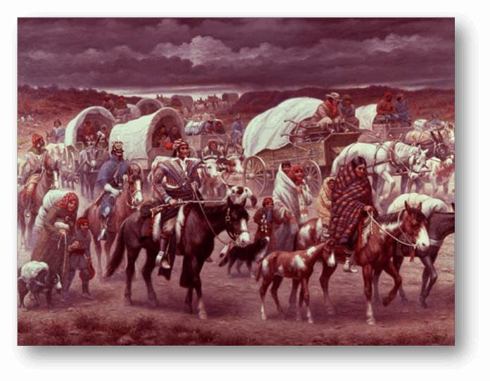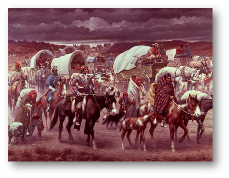 Toen in 1830 de zevende president van de Verenigde Staten, Andrew Jackson, de zogenaamde “Indian Removal Act” ondertekende, betekende dit ook niet zozeer de introductie van beleid om de aanwezigheid van indianen in Noord-Amerika tot een minimum te beperken. De acte stelde dat in de jonge Amerikaanse natiestaat “geen enkele deelstaat kan de juiste cultuur, beschaving en vooruitgang tot stand brengen, zo lang er zich binnen haar grenzen Indianen bevinden”, en dit was in feite het slotstuk van wat al veel langer onofficieel het beleid was geweest. Overal, door gans Amerika werden de indianen opgedreven door de Europese kolonisten die steeds groter in aantallen werden. De Indian Removal Act maakte het officieel staatsbeleid om de kolonisten te helpen bij het zuiveren van het land van indianen, door hen allemaal onder te brengen in een gebied: Oklahoma.